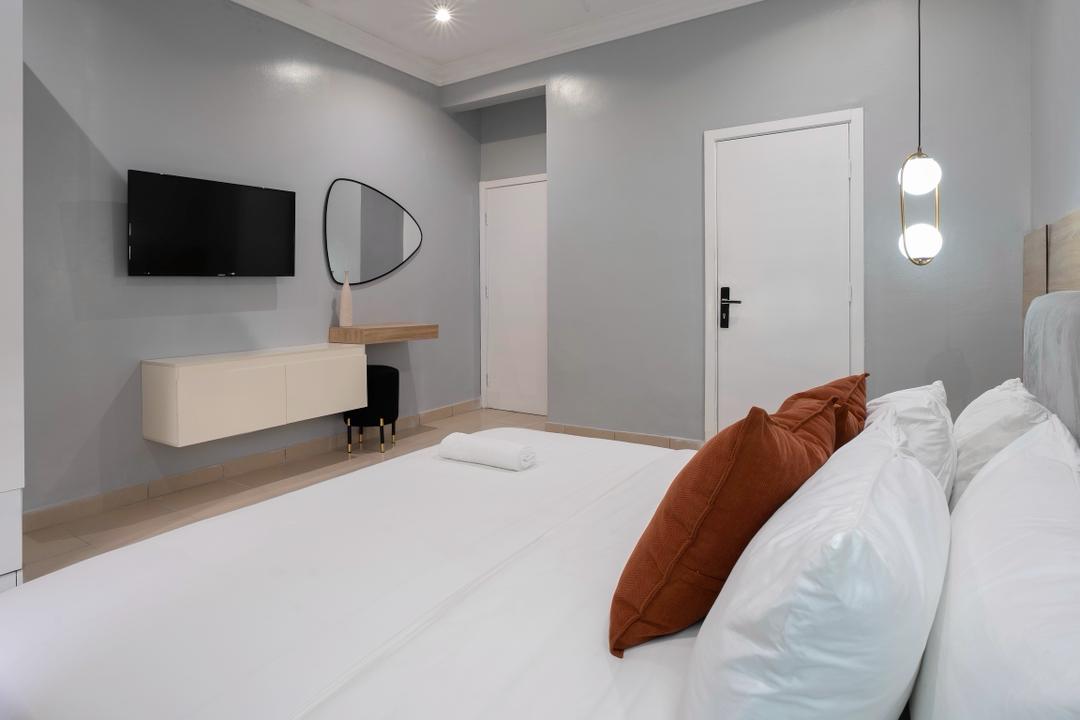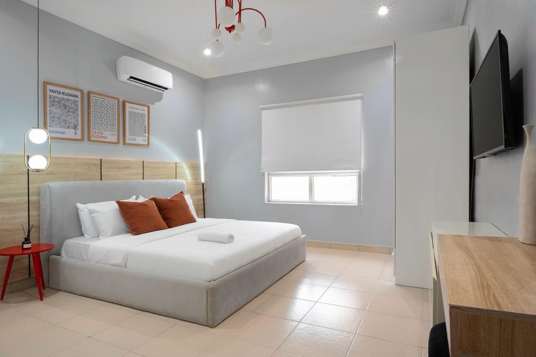 Fully furnished and family-friendly, this stylish apartment features 3 king-size bedrooms, 3 baths + extra toilet, air-conditioning, high-speed Wi-Fi, Smart TVs with DSTV/Netflix, and a well-equipped kitchen. Secure driveway parking, washing machine, and 24/7 utilities included.