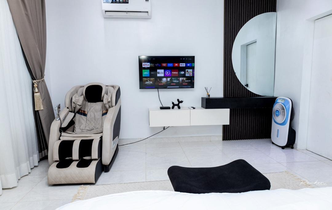 Stay in a stylish 1-bedroom apartment in Ikoyi offering the perfect combination of comfort, convenience, and security. Ideal for business travelers, couples, staycationers, and short lets, the apartment is fully furnished with a cozy living area, modern kitchen, serene bedroom with massage chair, and contemporary bathroom.